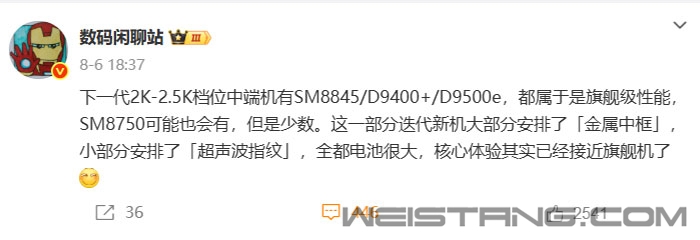 接下来要发布的骁龙8 Gen 5新机,可能是史上性价比最高的手机了。 高通骁龙峰会已经定于9月23日至25日在美国夏威夷毛伊岛举办。最新爆料称,高通除了将发布下一代旗舰芯片Snapdragon 8 Elite Gen 2(第二代骁龙8至尊)外,高通还打算推出具性价比优势的骁龙8 Gen5,该芯片将采N3P制程,搭载该芯片的手机起售价可能仅2000元。 ps.N3P是台积电 3nm工艺家族中的第三代技术节点,属于性能增强版,前两代分别为 N3B (基础版和N3E(成本优化版)。 此前,爆料达人数码闲聊站指出,下一代价格介于2000至2500元的中端手机,有SM8845、D9400+、D9500e这三款,都属于旗舰级性能,SM8750可能也有,但是少数。 这些新机大部分安排金属中框,小部分安排超声波指纹,电池全都很大,核心体验其实已经接近旗舰机了。 据早先传闻,SM8845即骁龙8 Gen 5,规格上可以看作是第二代骁龙8至尊的减配版,搭载相同的Oryon定制CPU核心和N3P工艺。 由于第二代骁龙8至尊样品机价格将明显上涨的消息传出,推测搭载该平台的机型售价可能也将跟着上调。 因此,高通决定推出一款在价格与性能之间取得平衡,同时维持较高毛利率的产品,预计骁龙8Gen 5手机定价将在人民币2000至2500元之间。 除了骁龙8 Gen 5之外,同期搭载天玑9400+与天玑9500e的手机,起售价可能也相当亲民。 |