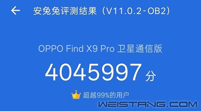OPPO Find系列产品负责人周意保今天发文晒图,公布了OPPO Find X9 Pro卫星通信版的跑分,安兔兔V11成绩4045997分,刷新手机行业历史记录。 该机将搭载天玑9500,周意保强调:“天玑上限一直看OPPO就够了”。 联发科今天已经官宣,天玑9500将于9月22日14:00正式发布。 天玑9500的CPU由1*4.21GHz Travis+3*3.50GHz Alto+4*2.7GHz Gelas组成,其中Travis和Alto是Arm新一代X9系超大核,Gelas是Arm新A7系大核。 GPU是全新的Mali-G1-Ultra MC12,采用全新的微架构,光追性能大大提升,同时还能降低功耗。 除了性能强劲之外,OPPO Find X9系列这次外观也大幅升级。 此前官方晒出了Find X9的正面,并且与上一代Find X8s和iPhone16 Pro Max进行了对比,新品明显边框更窄。 官方直言,Find X9系列拥有黄金R角、黄金尺寸、最窄物理四等边,自己的记录自己打破,最强标准版Find X9是OPPO三十周年诚意之作,值得期待。 |