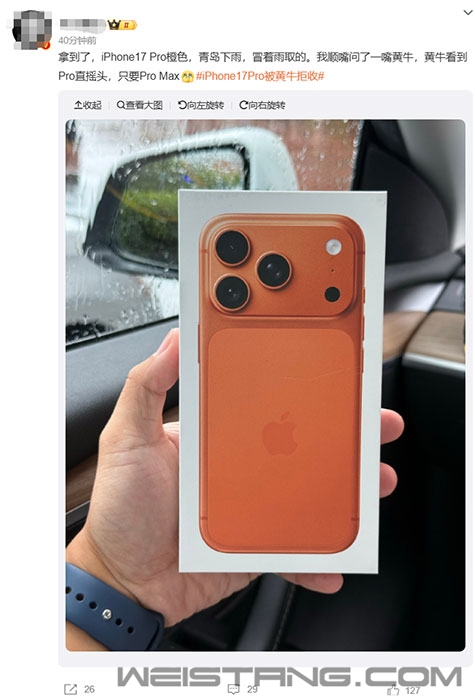 今日,iPhone 17系列正式发售,线上抢购到首批货源的用户将陆续收到新机,官方零售店也于8:00提前开门营业供预约取货用户取货。iPhone Air目前仍延期发售。 价格方面,iPhone 17:256GB 5999元;512GB 7999元。 iPhone 17 Pro:256GB 8999元;512GB 10999元;1TB 12999元。 iPhone 17 Pro Max:256GB 9999元;512GB 11999元;1TB 13999元;2TB 17999元。 不过,与消费者线下门店排长龙,购买热情高涨形成反差的是,原本被寄予厚望的iPhone 17系列在黄牛手里并不吃香,甚至有点冷清。 第一批抢购的砸手里了!iPhone 17 Pro今日首发遭黄牛拒收:一分钱都不愿意加 笔者咨询了部分商家,得到的答案基本一致: iPhone 17标准版无溢价,只原价收,一分钱也不愿意加。 iPhone 17 Pro基本没人愿意收,仅有256GB型号有少许溢价,且随时波动。 iPhone 17 Pro Max根据版本不同,加价幅度在200-600元不等,256G版最吃香。 一位黄牛表示,之所以256G版愿意给出更好价格,是因为要的人多,其他款“卖不起来价”,回收也比较谨慎。颜色上,今年新增的橙色和传统的银色更受偏爱。 另外,从微博网友的反馈来看,也大差不差。 “我顺嘴问了一嘴黄牛,黄牛看到Pro直摇头,只要Pro Max”。 “这真不是玩笑,就发生在我身上,问了俩,Pro直接拒收…留着自己用吧,苹果是一年不如一年了 ”。 苹果官网显示,iPhone 17 全系列在线订购发货时间均为3-4周。 但从目前的情况来看,iPhone 17系列破发,只是时间问题。 |
