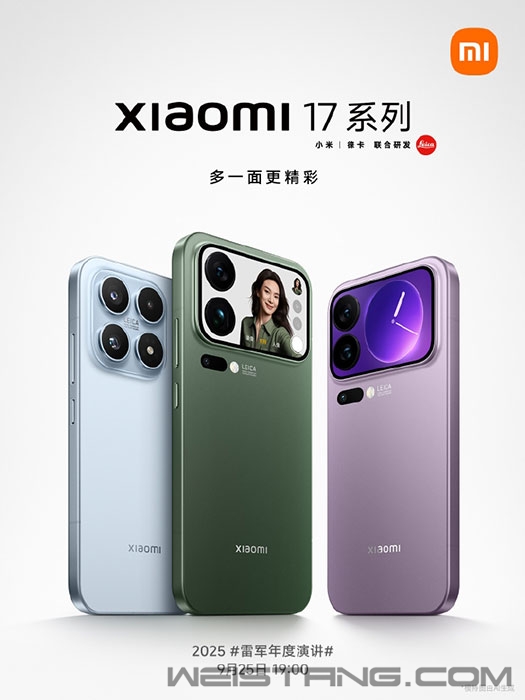2025雷军年度演讲已经定于9月25日晚19点举办,届时小米17系列将正式发布。 目前,新机的外观已经公布,相关核心配置、售价区间也同步曝光。 据@数码闲聊站 爆料,三款机型的主要配置概况如下: 首先,小米17加量不加价,有同档最强的续航和100W快充,电池大幅领先竞品。 小米17 Pro系列主打科技影像,落地下一代屏幕技术,主摄和长焦有新技术的徕卡影像系统,全新背屏设计等,真机精致感强于iPhone17 Pro。 此外,全系标配骁龙8E5,全系256GB起步,标准版之前说过站稳4.5K,Pro和上一代一样,会继续深耕5K+市场,全新的Pro Max大屏旗舰瞄准6K+,晚点儿的小米17 Ultra定位进一步上探至7K档。 与此同时,小米手机官微公布了小米17标准版的外观官图,采用6.3英寸纯平直屏,超椭圆R角,1.18mm超窄边框,整机薄至8.06mm,轻至 191g。 此外,采用机身同色玻璃镜组,四微曲包裹式中框,微弧过渡握感超丝滑。 |