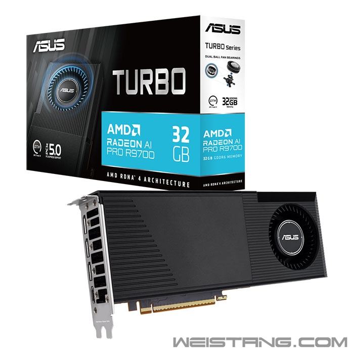 华硕正式推出了Turbo Radeon AI Pro R9700 32GB显卡,官方宣称这是一款专为AI开发者以及其他追求高效散热、紧凑设计和可靠性专业人士打造的高性能显卡。 这也是华硕首款采用12V - 2x6电源接口的AMD显卡,配备了32GB的GDDR6显存,采用256-bit位宽,整体设计为紧凑的双槽规格,并配备了涡轮式散热系统。 显卡长度为26.7厘米,推荐搭配至少750W的电源,华硕表示,其加固的压铸护罩和背板可使显存温度降低高达16%,而相变GPU导热垫相比普通导热膏能更有效地进行长期热传导。 虽然定位专业显卡,但华硕仍通过GPU Tweak III为该显卡提供了出厂超频功能,可提升至 2940MHz(比默认规格高出20MHz),游戏频率2370MHz,这使其成为首款官方超频的R9700显卡。 Radeon AI PRO R9700于今年7月推出,AMD并未提供公版型号,显卡拥有32GB显存、128个AI加速器,以及1531TOPS INT4的性能表现,既适合AI开发工作负载,也适用于标准工作站使用。 |