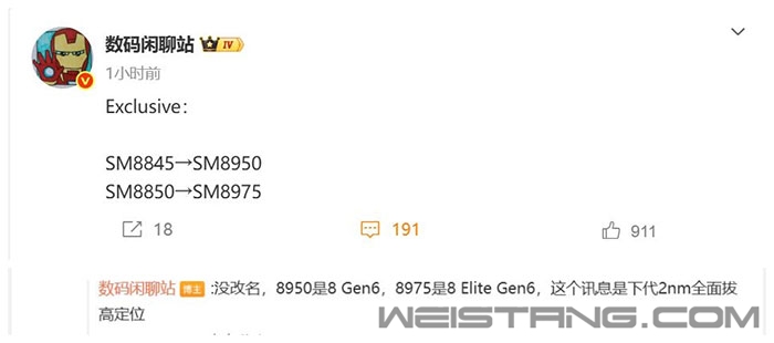 博主数码闲聊站爆料,明年的高通骁龙8 Gen6(SM8950)和骁龙8 Elite Gen6(SM8975)全面升级2nm工艺,定位更高,这将是高通首款2nm手机芯片。 据爆料,骁龙8 Gen6系列仍然交由台积电代工,首次采用台积电N2工艺(2nm制程),相较于N3E工艺,N2工艺预计将在相同功率下实现10%至15%的性能提升,或在相同频率下将功耗降低25%至30%,并且晶体管密度将提升15%。 随着2nm时代的到来,台积电的报价继续升高,消息称台积电每片2nm晶圆的价格可能超过3万美元,高于之前预期的2.5万美元。相比之下,3nm晶圆的价格大概在1.85万至2万美元,而4/5nm晶圆的价格在1.5到1.6万美元之间。 这意味着搭载骁龙8 Gen6系列芯片的旗舰将要掀起涨价潮。在去年10月,因高通骁龙8 Elite、联发科天玑9400芯片切入台积电3nm工艺,国产品牌旗舰集体涨价,明年的迭代旗舰预计将迎来新一轮涨价。 |