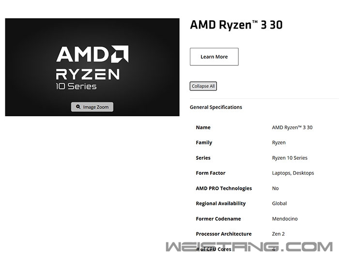 产品上的一路领先,给了AMD处理器极大的自由度,也包括不好的一面,比如混乱的产品命名、层层叠套的马甲。 当然,即便是落后状态的Intel,也会经常这么干,真是让人头疼。 眼瞅着Zen6都要来了,AMD突然又把古老的Zen2、Zen3+架构重新拉出来,发布了锐龙10、锐龙100系列,都穿了一层层的马甲。 锐龙10系列核心代号“Mendocino”,最初诞生是2022年9月,命名为锐龙/速龙7020U系列,是整个AMD处理器家族中最低端的,面向Chromebook等廉价笔记本。 它使用的还是6nm工艺、Zen2与RDNA2架构,热设计功耗8-15W,集成2单元Radeon 610M GPU,支持LPDDR5、PCIe 3.0、USB 3.2 10G。 此次推出的“新品”有两款:锐龙5 40、锐龙3 30,原来分别叫锐龙5 7520U、锐龙3 7320U,都是4核心8线程、2二级缓存、4MB三级缓存,频率分别为2.8-4.3GHz、2.4-4.1GHz。 锐龙100系列核心代号“Rembrandt”,最早用于2022年初发布的锐龙6000系列移动版,后来部分改名为锐龙7000系列。 它用的也是6nm工艺,架构为Zen3+、RDNA2,集成12单元Radeon 680M、6单元Radeon 660M GPU,支持DDR5、PCIe 4.0、USB 3.2 10G。 如今重生的型号多达五款: 锐龙7 170:也就是锐龙7 7735HS,8核心,3.2-4.75GHz频率,4+16MB缓存,Radeon 680M,热设计功耗35-54W。 锐龙7 160:也就是锐龙7 7735U,8核心,2.7-4.75GHz频率,4+16MB缓存,Radeon 680M,热设计功耗28W。 锐龙5 150:也就是锐龙5 7535HS,6核心,3.3-4.55GHz频率,3+16MB缓存,Radeon 660M,热设计功耗35-54W。 锐龙5 130:也就是锐龙5 7535U,6核心,2.9-4.55GHz频率,3+16MB缓存,Radeon 660M,热设计功耗28W。 锐龙3 110:也就是锐龙5 7520U,4核心,3.0-4.3GHz频率(基础提高了200MHz),2+8MB缓存,Radeon 660M(4单元),热设计功耗15W。 |