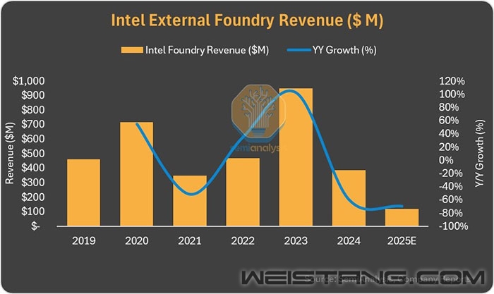Intel在新任CEO陈立武的领导下,包括晶圆代工部门(IFS)在内的各项业务都展现出积极的转变迹象,但IFS距离实现收支平衡仍有很长的路要走。 根据SemiAnalysis分享的数据统计,Intel晶圆代工业务在2025年的营收与行业巨头台积电相比,差距高达千倍。 数据显示,Intel Foundry在2025年的营收预计仅为1.2亿美元,这个数字与其在18A等先进工艺上投入的巨大支出相比,显得微不足道。 Sravan Kundojjala表示,Intel Foundry的营收与台积电多年来的成就相比,简直是“九牛一毛”。 不过近期市场对Intel芯片服务的兴趣正在升温,报道称,特斯拉、博通和微软等公司正倾向于采用Intel即将推出的先进工艺,如18A和14A。 这些外部客户的采纳,对于其代工业务能否重拾昔日辉煌并与台积电抗衡至关重要。 此前陈立武曾表示,如果Intel无法获得外部客户对其节点的采纳,公司将不得不放弃这场“摩尔定律竞赛”。 |