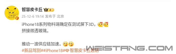 自从iPhone 14 Pro开启灵动岛屏幕以来,这个形态已经延续了四代产品,苹果也是时候挤出一些新牙膏了。 据博主“智慧皮卡丘”透露,iPhone 18系列物料端确认在测试屏下3D人脸识别,终于实现Face ID组件的隐藏。 其实苹果已经对相关技术研发多年,最初计划是在2024年在iPhone 16 Pro系列上首发,但因为测试效果还不够理想,因此将该技术不断推迟。 得益于屏下Face ID,iPhone 18系列的灵动岛尺寸将大大缩减,成为史上最高屏占比的iPhone,在游戏和观影时候的影响大大降低。 需要注意的是,今年iPhone 17标准版已经挤爆牙膏,预计明年iPhone 18标准版会升级较小,无缘这项新技术。 iPhone 18 Pro系列将独享屏下Face ID,首发小号灵动岛屏幕,成为Pro机型的一大升级点,预计会催动不少换机需求。 |