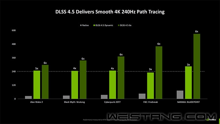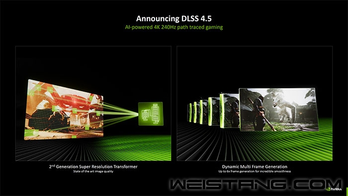 虽然没有新卡,但NVIDIA依然在CES 2026上为玩家带来了惊喜,正式发布了史上最强的“大力水手”DLSS 4 .5,进一步提升游戏帧率和画面质量。 虽然命名上只进步了0.5,但DLSS 4 .5却进步巨大,主要带来了两项重大更新: 首先是DLSS 4.5超分辨率技术,它在图像质量方面得到了极大的增强,解决了DLSS 4的所有不足; 其次是DLSS 4.5 6倍MFG(多帧生成),它在MFG算法中增加了两帧,进一步提升了帧率,并带来更流畅的游戏体验。 去年发布的DLSS 4首次引入了“多帧生成(MGF,Multi-Frame Generation)”技术,可利用AI可为每个渲染帧额外生成多达3帧,达成4倍帧率。 如今,DLSS 4 .5的多帧生成达到了6倍帧。同时,DLSS 4 .5还带来了第二代Transformer超分辨率模型,能够呈现更细腻的图像质量。 此外,NVIDIA在MFG技术的基础上更进一步,推出了名为DLSS 4.5动态多帧生成 (DLSS 4.5 Dynamic Multi-Frame Generation) 的全新模式。借助此模式,用户可以最大限度地提高帧率,使其与显示器的刷新率相匹配。 该模式专为240Hz及以上刷新率的显示器而设计,用户可以手动设置目标帧率,之后动态多帧生成 (DLSS 4.5 Dynamic Multi-Frame Generation) 会动态地在1倍到6倍之间切换MFG模式,以维持设定的帧率。 从官方PPT来看,大多数3A游戏需要4倍或3倍的MFG模式才能保持240Hz的刷新率。6倍模式则适用于使用360Hz或更高刷新率的4K显示器的用户。 之前,NVIDIA在DLSS 4中引入了全新的Transformer模型,该模型利用最新的 Tensor Core AI 硬件功能来提升图像质量。这项技术相比之前的卷积神经网络 (CNN) 有了显著提升,并改进了DLSS 3的诸多不足之处。然而,这项图像放大技术在某些方面仍有改进空间。 这就是NVIDIA DLSS 4.5超分辨率技术的第二代Transformer模型发挥作用的地方。新模型拥有5倍的计算能力,并利用Blackwell的FP8功能,实现了更佳的上下文感知和更智能的像素采样。 这主要解决了游戏中的三个问题:时间稳定性、重影和边缘锐化。 使用 AI超采样或帧生成技术时,时间稳定性可能会受到影响。这意味着每一帧都与前一帧不一致,导致某些物体或整个场景的视觉细节降低。DLSS 4.5提高了整体时间稳定性,提供比DLSS 4超分辨率更高的图像质量。 当物体移动时,会在身后留下拖影,这就是重影现象。例如,快速移动的物体(如汽车)、装备/使用武器,以及其他任何移动的物体,有时都会留下拖影,这会造成干扰,分散注意力。当帧率高于2倍时,这个问题会更加明显。DLSS 4.5则有助于进一步减少重影并消除这些拖影。 DLSS 4.5超分辨率技术的另一项改进之处在于抗锯齿。例如,图中显示一个 NPC 移动时边缘略微有些锯齿状。DLSS 4.5通过超强的抗锯齿技术消除了这种锯齿,从而呈现更多细节。 NVIDIA还宣布,最新的GeForce Game Ready 591.74驱动程序已支持 DLSS 4.5 RTX 超级分辨率技术,已在超过400款游戏中可用。 兼容性方面,DLSS 4.5 AI 超级分辨率技术将适用于所有RTX GPU,甚至包括较早的RTX 20系列。因此,所有RTX用户都能享受到更佳的图像质量。动态6倍帧生成模式将于2026年春季在最新的RTX 50 GPU上推出。 延伸阅读: NVIDIA DLSS,全称Deep Learning Super Sampling(深度学习超级采样),靠吃AI算法这颗“菠菜”开挂,“脑补”出实时渲染中缺失的像素,从而提升实时渲染的帧数。所以,又被广大游戏玩家戏称为“大力水手”。 开启DLSS之后,GPU只需要先输出一个或多个低分辨率的画面,DLSS就能调用GPU的Tensor Core进行AI运算,“脑补”出高分辨率画面并输出,以达到高分辨率下提升实时渲染帧数的效果。 |