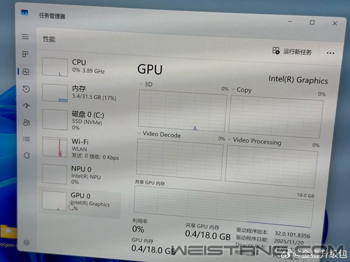 据博主金猪升级包最新透露,Intel对锐炫B系列核显的品牌显示规则进行了限制。 具体而言,即便处理器硬件上搭载了基于Xe3架构的锐炫B390或锐炫B370核显,但如果厂商搭配的内存频率低于7467MT/s,Windows任务管理器将不会显示具体型号,而是直接降级显示为泛指的“Intel Graphics”。 这一规则直接针对OEM厂商的缩水行为,由于核显性能比较依赖内存带宽,部分厂商可能为降低成本,给高端型号配备低频内存,导致实际性能与宣传不符。 通过这种方式,Intel既能防止评测中出现锐炫核显性能不佳的误会,也能防止厂商用低频内存拖后腿,却依然挂着高端核显的牌子误导消费者。 而对于用户而言,只要看到"Arc B390/B370"标识,即可确认该机型配备了高频内存,能发挥核显的完整性能。 |