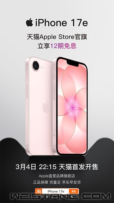 iPhone 17e、新款iPad Air在天猫全球同步首发。 目前,iPhone 17e、新款iPad Air已在天猫启动预约,售价分别为4499元起、4799元起。3月4日22点15分,开启售卖。 iPhone 17e加入iPhone 17产品阵容,搭载抗刮划能力更高的超瓷晶面板2、最新一代芯片A19、4800万像素融合式摄像头、快捷的MagSafe无线充电和USB‑C连接,存储容量256GB起步。 新款iPad Air搭载超快速的M4芯片,统一系统内存提升50%,想做什么都得心应手。图形处理器架构带来先进的图形处理能力,无论是工作、创作、玩游戏还是在线追剧,流畅度再升级。 今年消费者在天猫AppleStore官方旗舰店买春季新品更划算,新品首发期,即支持至高12期免息。 此外,通过以旧换新购买新iPhone,天猫补贴高至900元,还可额外叠加国家补贴500元。 天猫Apple Store官方旗舰店由苹果官方直营,享有正品保证,库存充足,支持激活后7天无理由退货政策,并提供包括以旧换新、免息分期付款和Apple Specialist专家支持在内的一致官方服务,以确保最佳用户体验。 3月4日22点15分,天猫将现货开售iPhone 17e和新款iPad Air,库存充足,成为消费者购买苹果春季新品首选的电商平台。 |
