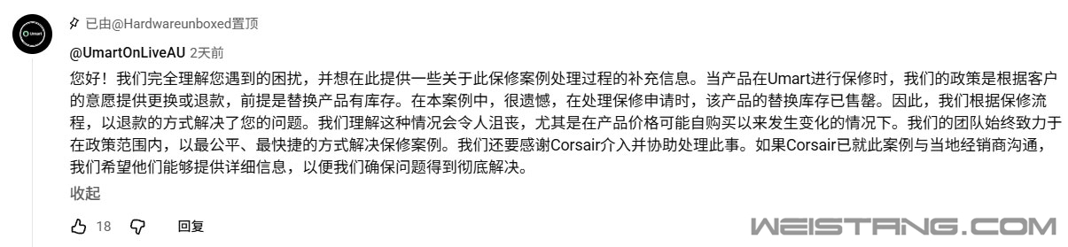 全球内存芯片供应危机持续发酵,DDR5内存价格迎来暴涨,同款产品市场价较两年前飙升3.5至4倍,涨价潮也引发了消费端的保修维权纠纷。 近日,澳大利亚一名消费者的保修遭遇,在海外PC硬件圈引发广泛争议。 澳大利亚消费者Goran于2024年购入一套美商海盗船32GBDDR5-5600内存套装,产品出现故障后,他向澳大利亚头部专业PC硬件零售商Umart提交保修索赔。商家通过测试确认了内存条故障,却直接拒绝了消费者的换新诉求。 即便店内有大量同规格内存现货,Umart仍声称更换同类型产品属于“升级”,要求Goran额外支付400澳元以上的差价;同时商家仅愿意按购买时的155澳元原价退款,而目前同规格内存套装的市场价已高达500至600澳元,原价退款金额不足当前售价的三分之一。 为维护自身权益,Goran援引澳大利亚消费者权益法提出异议。根据当地法规,零售商需对保修索赔负责,必须为缺陷产品提供更换或合理退款方案,后续责任由零售商与制造商对接。但Umart却对相关法条做出歪曲解读,始终坚持原价退款是合规的解决方案。 更离谱的是,商家直接扣押了故障内存条,称产品已转交授权供应商,且供应商“以代金券代替了替换库存”。这一操作直接导致Goran无法凭产品向美商海盗船申请官方有限终身保修,更有业内声音质疑,Umart或已按当前市场价从供应商处获得赔付,私吞了数倍的差价。 此后Goran向美商海盗船官方提交维权材料,却遭遇了长达三周的无回应状态。直到知名硬件测评博主HardwareUnboxed介入此事,美商海盗船才迅速回应称正在处理该案件,这也引发了网友关于网红特权的质疑。 而Umart仅在相关视频评论区发布了模棱两可的声明,重申原有立场,引发网友强烈不满。 以下是Umart的回应: “您好!我们完全理解您遇到的困扰,并想在此提供一些关于此保修案例处理过程的补充信息。 当产品在Umart进行保修时,我们的政策是根据客户的意愿提供更换或退款,前提是替换产品有库存。在本案例中,很遗憾,在处理保修申请时,该产品的替换库存已售罄。 因此,我们根据保修流程,以退款的方式解决了您的问题。我们理解这种情况会令人沮丧,尤其是在产品价格可能自购买以来发生变化的情况下。我们的团队始终致力于在政策范围内,以最公平、最快捷的方式解决保修案例。 我们还要感谢Corsair介入并协助处理此事。如果Corsair已就此案例与当地经销商沟通,我们希望他们能够提供详细信息,以便我们确保问题得到彻底解决。” 目前,该博主已收到多起针对Umart保修服务的同类投诉,蹲一个后续进展。 |