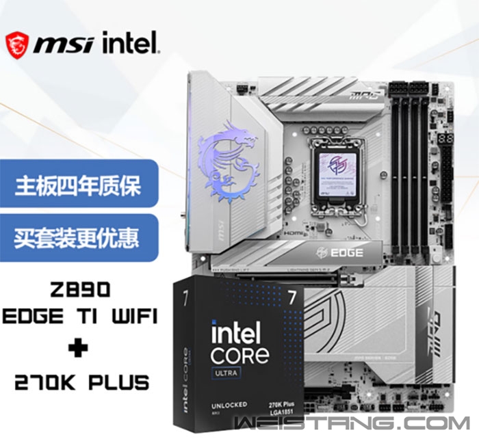 伴随英特尔酷睿Ultra 200S Plus系列处理器于3月26日正式上市,微星同步推出了两款板U套装。 新发布的酷睿Ultra 7 270K Plus与Ultra 5 250K Plus相比原版各增加4个E核,缓存同步增大,其中Ultra 7 270K Plus的核心规格已看齐上代旗舰Ultra 9 285K。 内存原生支持提升至DDR5-7200,率先支持4-Rank CUDIMM,单条容量可达128GB。系列定价进一步做到“加量又减价”,为板U组合留下更充足的预算空间。 微星此次推出两款板U套装,其中MPG Z890 EDGE TI WIFI刀锋钛搭配Intel酷睿Ultra 7 270K Plus,定位高性能用户。 该主板采用银色金属钛外观,适合组建白色主题主机,供电部分搭载16+1+1+1路智能供电与8层PCB设计,支持PCIe 5.0、满血版Wi-Fi 7及微星EZ DIY快拆技术,可充分释放Ultra 7 270K Plus的性能潜力,套装售价3999元。 另一款为MAG B860M MORTAR WIFI迫击炮搭配Intel酷睿Ultra 5 250K Plus,主打主流性价比。迫击炮系列一直是微星的销量爆款,此次MAG B860M MORTAR WIFI迫击炮在MATX尺寸下提供12+1+1+1路智能供电,配备满血版Wi-Fi 7,并全面应用微星EZ DIY快拆技术(显卡、M.2冰霜铠甲等),大幅简化装机与维护流程,搭配Ultra 5 250K Plus,是喜爱小机箱、追求高性价比用户的稳妥之选,套装售价2769元。 值得一提的是,微星800系列主板全系现已升级为4年质保,且无需繁琐的注册流程,用户购买后即可直接享受长达4年的保修服务。相比行业普遍的3年质保,这一政策为用户提供了更长久的使用保障,尤其适合计划长期使用、追求稳定耐用的装机用户。 |
