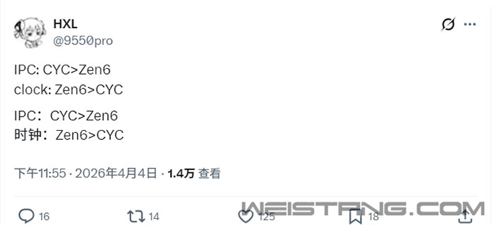 据HXL(@9550pro )透露,Intel下一代Nova Lake处理器所采用的Coyote Cove P核架构在IPC方面将超过AMD Zen 6,但AMD Zen 6将在频率上占据优势。 Nova Lake预计搭载Coyote Cove P核和Arctic Wolf E核,而AMD Zen 6将用于下一代锐龙处理器,APU则采用更注重能效的Zen 6C核心。 根据笔吧评测室此前的SPEC CPU 2017测试数据,Intel当前用于Panther Lake的Cougar Cove P核在IPC上已经领先Zen 5,Darkmont E核和Lion Cove P核同样高于Zen 5。 不过AMD历次Zen架构迭代都有显著提升,Zen 6作为重大更新,IPC差距能否维持仍是未知数。 频率方面,目前锐龙9 9950X和酷睿Ultra 9 285K的加速频率均停留在5.7GHz,Zen 6预计将冲击6GHz或更高的加速频率。 Intel的反击方向则集中在核心规模上,Nova Lake笔记本端最高28核,桌面端最高52核,缓存容量可达288MB,在核心数量上形成优势。 Nova Lake预计2026年下半年发布,AMD Zen 6桌面版将在相近时间亮相,下半年CPU市场的正面交锋值得期待。 |