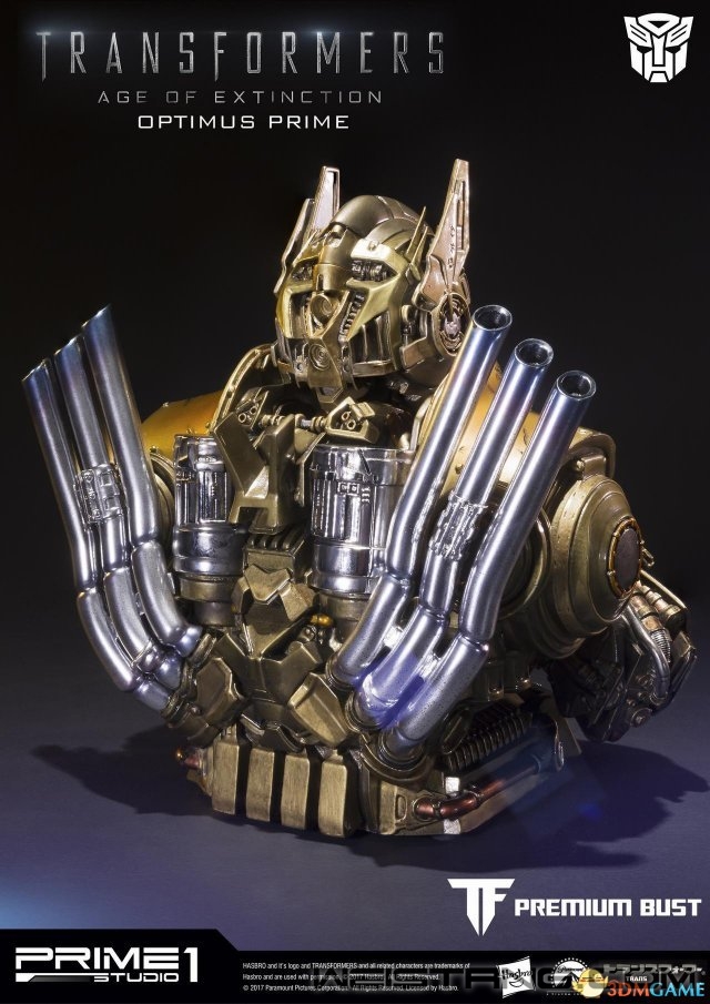 《变形金刚4:绝迹重生》是派拉蒙影业制作的一部机器人科幻电影,由迈克尔·贝导演。电影成功上映后推出了众多衍生产品。日本新兴玩具公司Prime 1 Studio于近日发布了《变形金刚4》擎天柱、惊破天金色胸像。限量发售全球各限定300个,变形金刚影迷们的终极藏品。