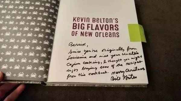 一段留言:我知道你来自路易斯安那,想念家乡的味道,希望这本菜谱你能用得上。(Aerrix 在个人资料里写过自己来自路易斯安那州。)
