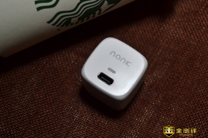 32×32×33mm的NANK-C1迷你充电头。NANK的logo,工作指示灯,DP接口。