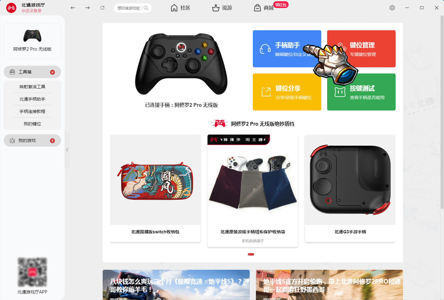 北通手柄的专属支持软件就是北通的游戏厅软件,这个软件能够适配我们使用的手柄,从这个软件上也能看到手柄的说明以及手柄的按键测试等功能。