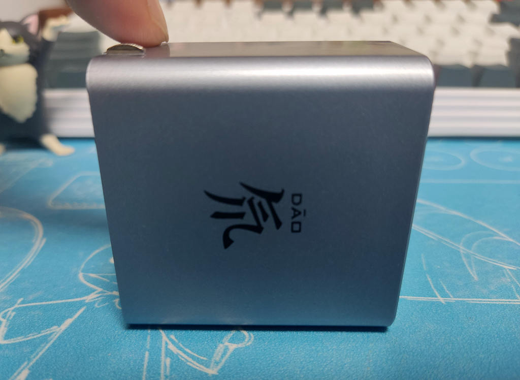 努比亚氘锋65W GaN3充电头整体为极具科技感的银色,侧面印有GAN3、65w和氘(DAO)字样。充电头尺寸为51*51.8*30mm,净重为118g,体积迷你、方便携带;