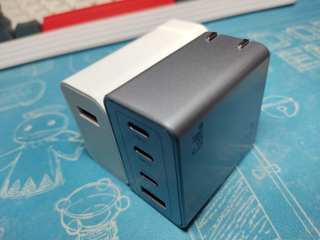 作为一款65w氮化镓充电器,与本人之前使用的小米原装的33w单口USB充电头体积作对比,努比亚这款65w充电器只是略高更短,功率更大的同时还拥有4口充电,经过计算功率密度达到了0.82/cm3,作为一款折叠插头的65w四口充电器体积控制的非常好;
