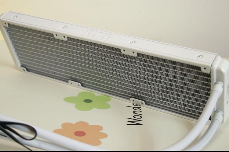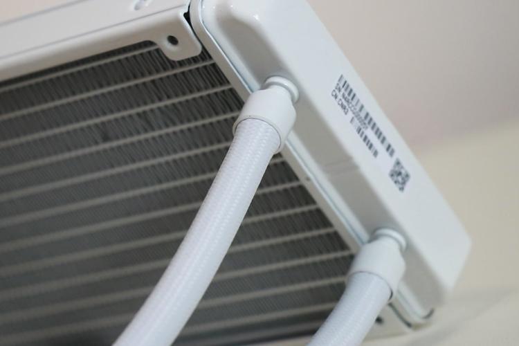 冷排为全铝材质,表面光面珍珠白烤漆,编织网保护管路,通体白色非常适合白色主题装机。