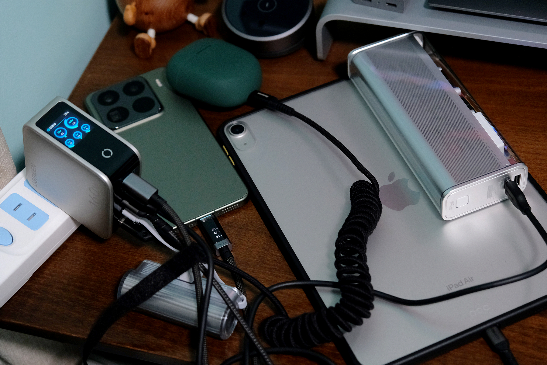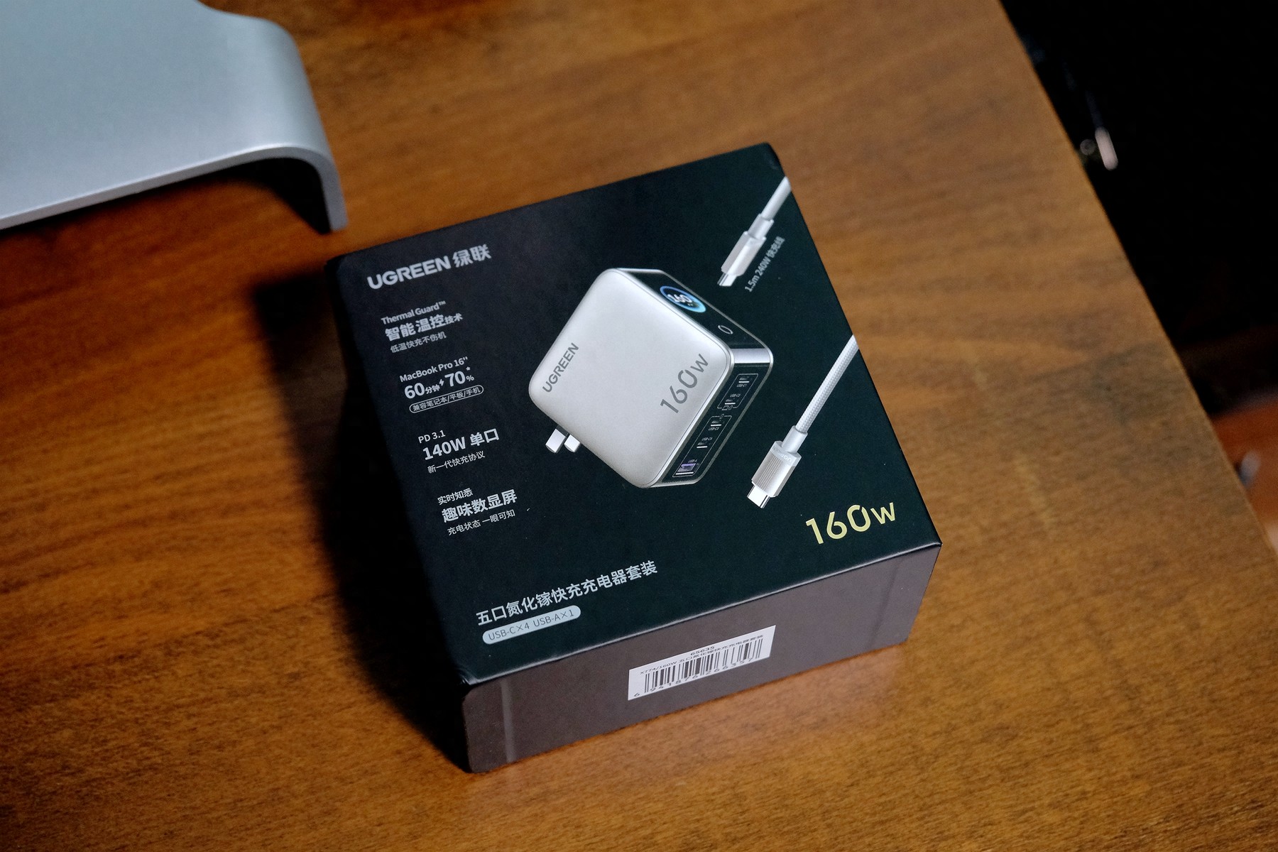 前言 对于手上有多个数码产品的小伙伴来说,一款兼顾性好、便于携带的充电器是必不可少,但要挑选到自己很满意的产品也不是易事,主要是在体积、功率、接口、功能等方面比较纠结。 这次楼主跟大家分享一款绿联新推出的160W多口氮化镓充电器,也是绿联首创160W带握手协议实时显示的氮化镓充电器。体积适中,作为座充或旅充来说也较为便捷,搭载五个充电接口( USB-C *4 + USB-A *1)满足多设备用户的使用需求,更重要的是还搭载了一块显示屏,能够实时查看实时数显功率,整体兼顾了很不错的实用性及功能性,而这款充电器的价格也才在200元档的价位,跟同类产品相比有着不错的性价比,另外还有绿联大品牌背书,品质和售后方面也更有保障。 接下来跟着楼主一起更深入的了解一下吧~ 简单开箱 拿到产品包装盒的第一印象就是这小盒子还蛮重的,盒身正面可以看到充电器的外观彩图,左侧还标注了其功能特性单口最高支持140W,采用氮化镓技术,支持五口多设备充电▼