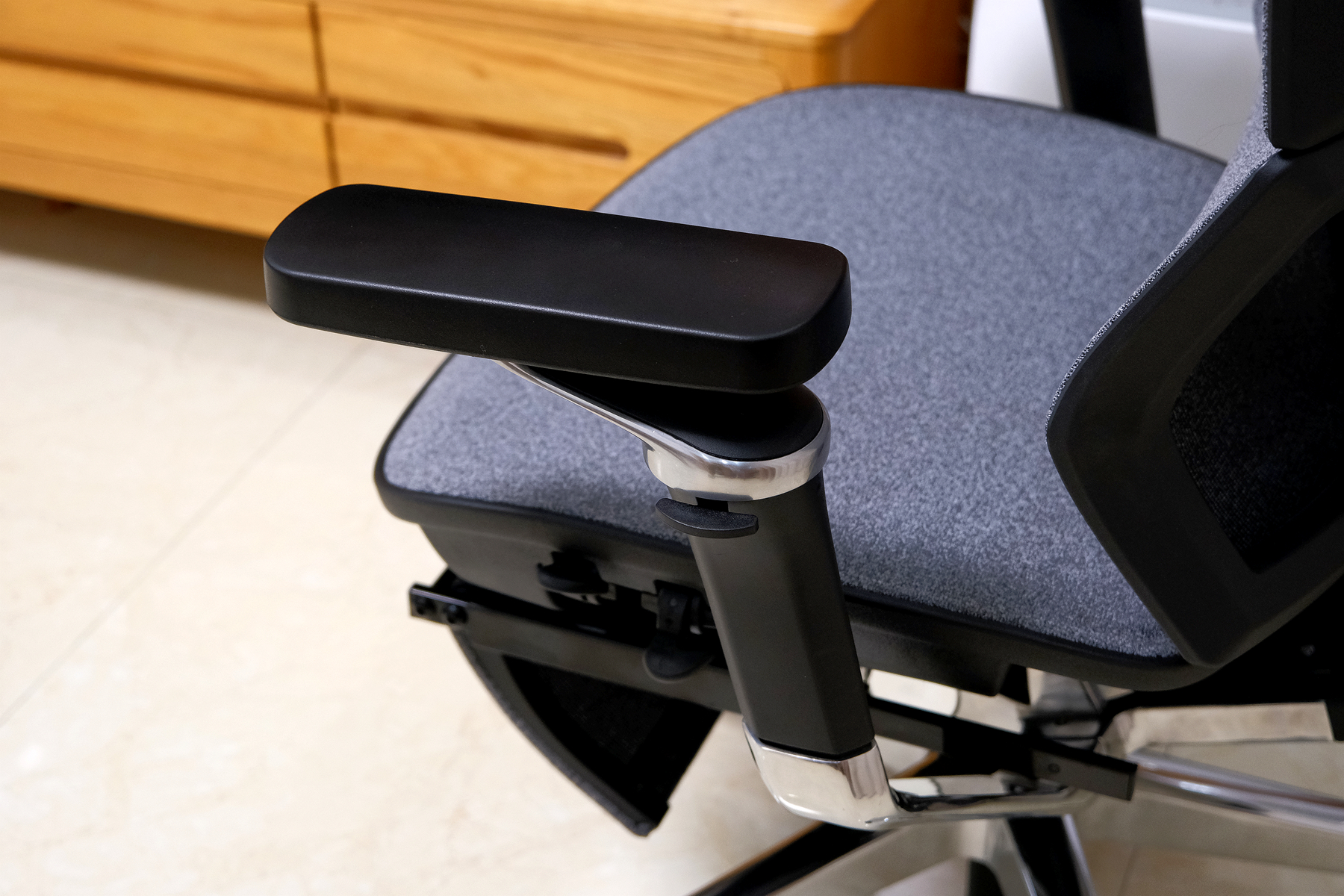 结合桌面场景使用的时候,扶手通过6cm的增高,在高度方面基本能够做到跟桌面齐平,再结合8D调节功能的支持,让整个手部能够得到有效的支持,即便长时间码字下来手部也不容易会出现酸胀舒适的感受▼