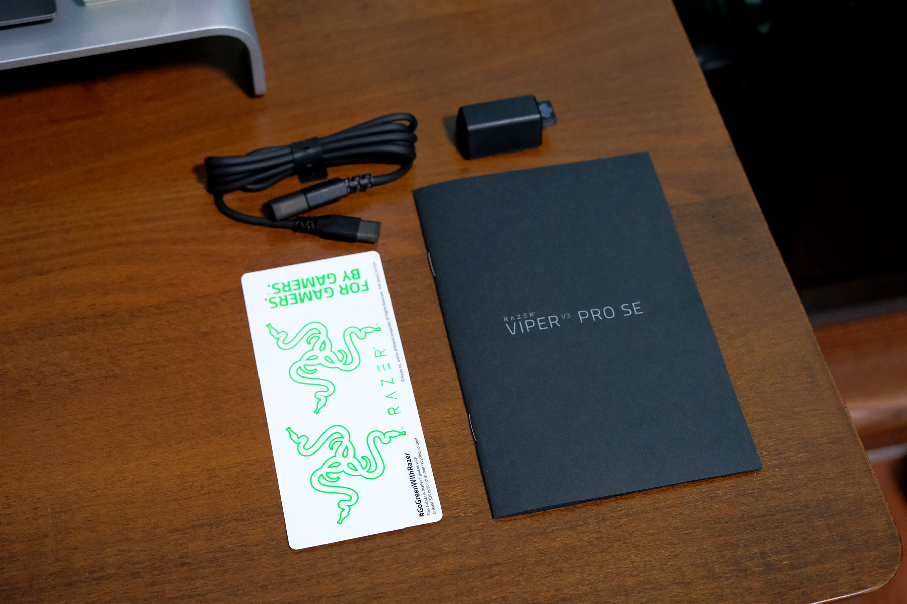 配件方面与V3专业版也有一些区别,主要在于线材改为了橡胶材质,接收器为2.4G USB-A接口▼