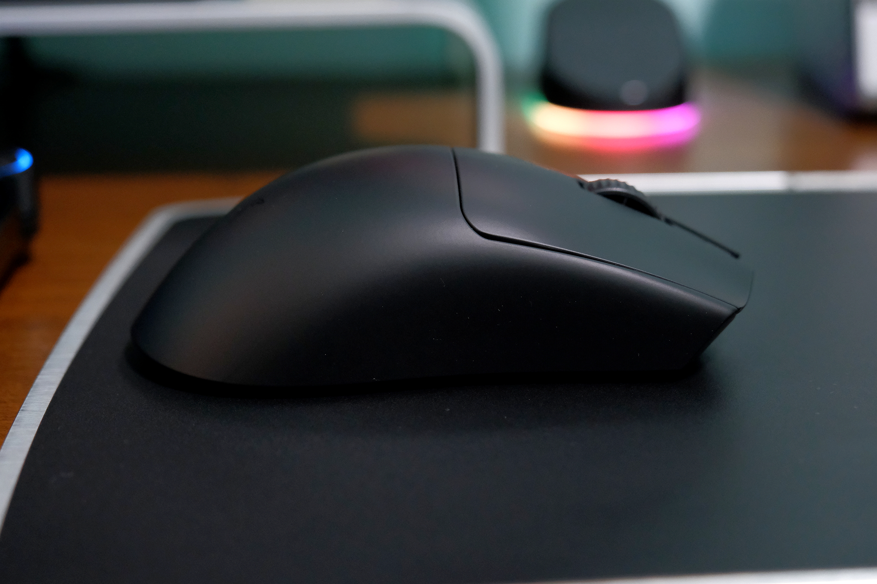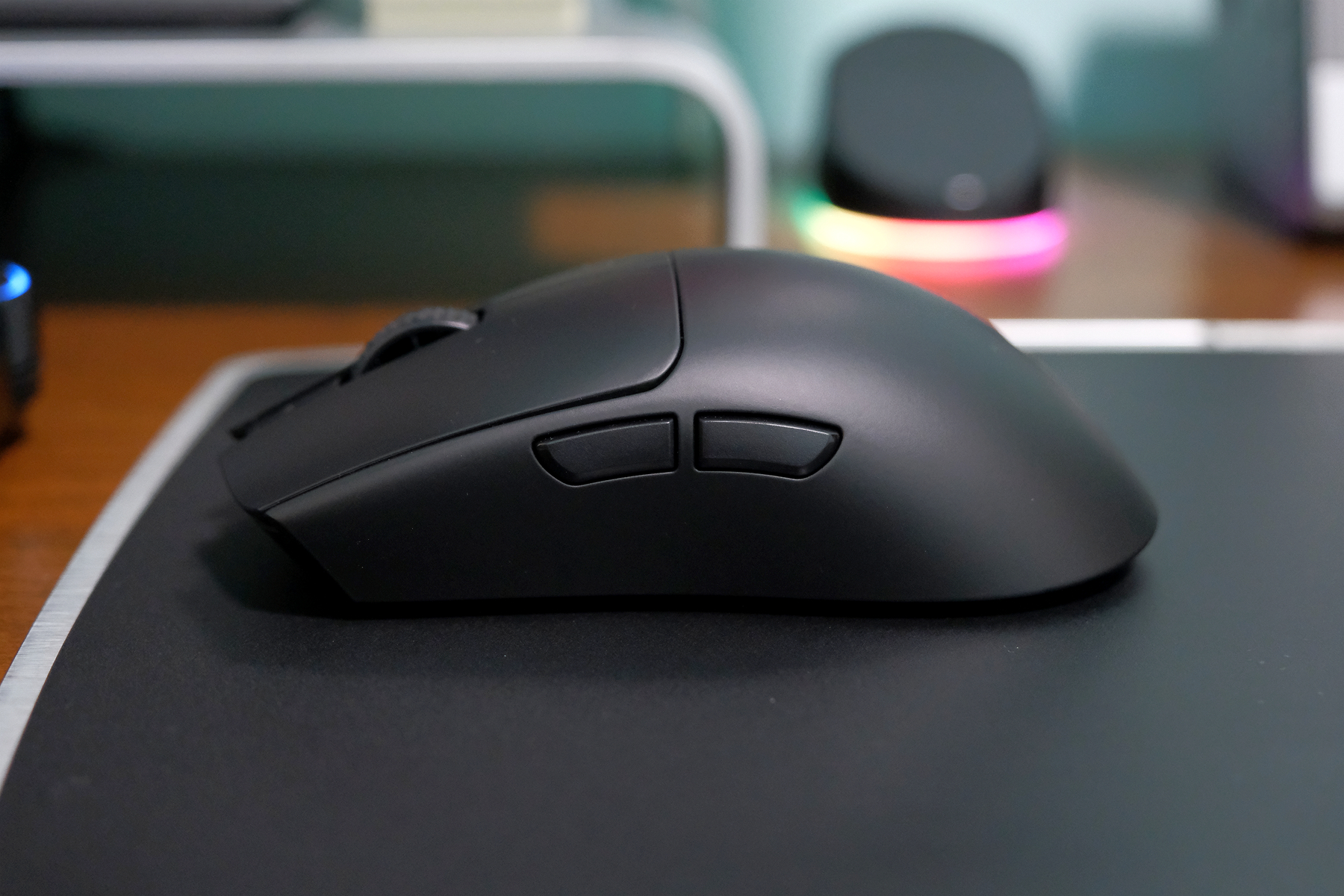 分体式按键搭载雷蛇第三代光学微动,拥有9000万次按动寿命,这款微动的按键手感与机械微动差别不大,其反馈与口碑在圈子里是好评不断,中置滚轮的编码器为TTC 8MM银轮,滚动手感阻尼适中,其前方配置了一颗LED提示灯,日常可以通过它查看鼠标实时状态▼