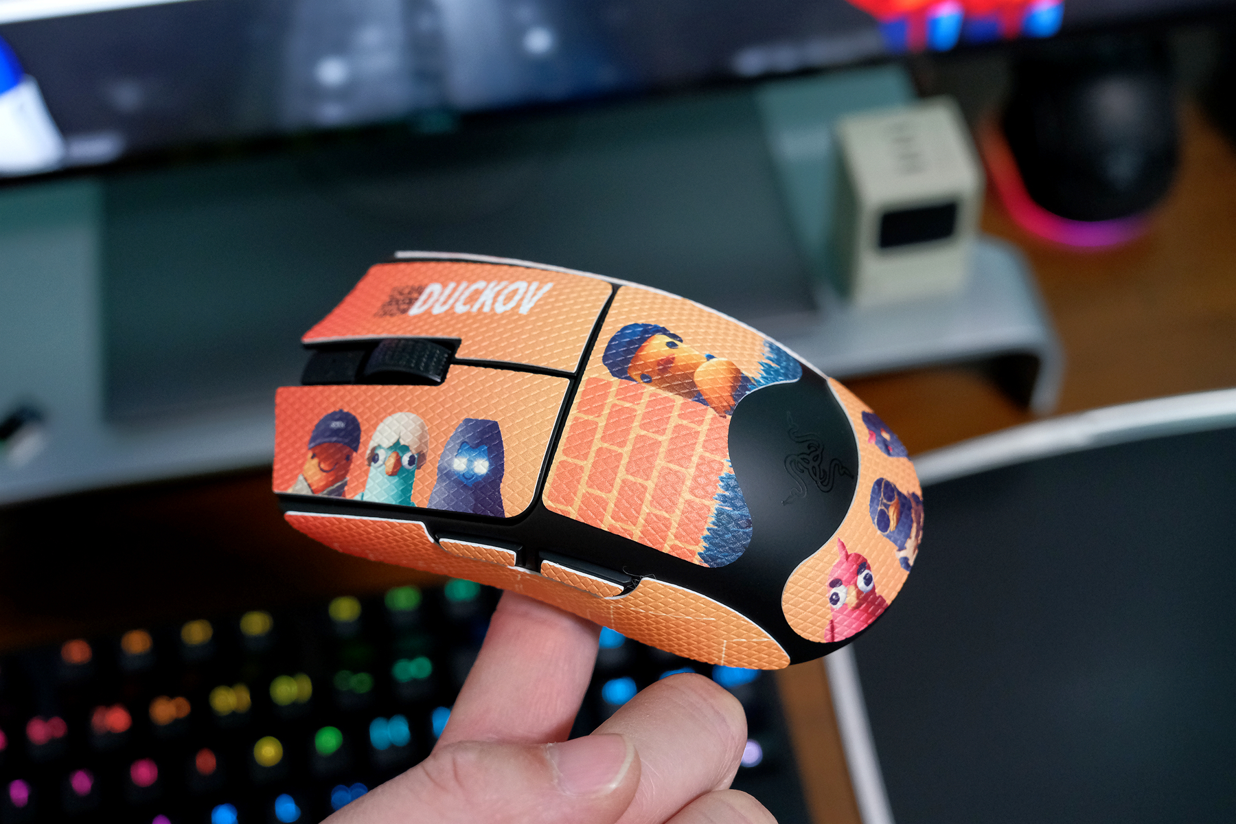 最后总结 雷蛇毒蝰V3专业版SE有了“鸭科夫”元素的加持在外观上增添了份不一样的萌趣感,就如同游戏设定那样以不变应万变,性能上依然是雷蛇很高阶的配置,HYPERSPEED无线技术的1000Hz轮询率能够满足大部分玩家的游戏场景,在价格方面也带来了妥协,对于喜欢毒蝰的玩家来说也有了更多的选择面,市场定位也更佳精准化。 谢谢观看,完...