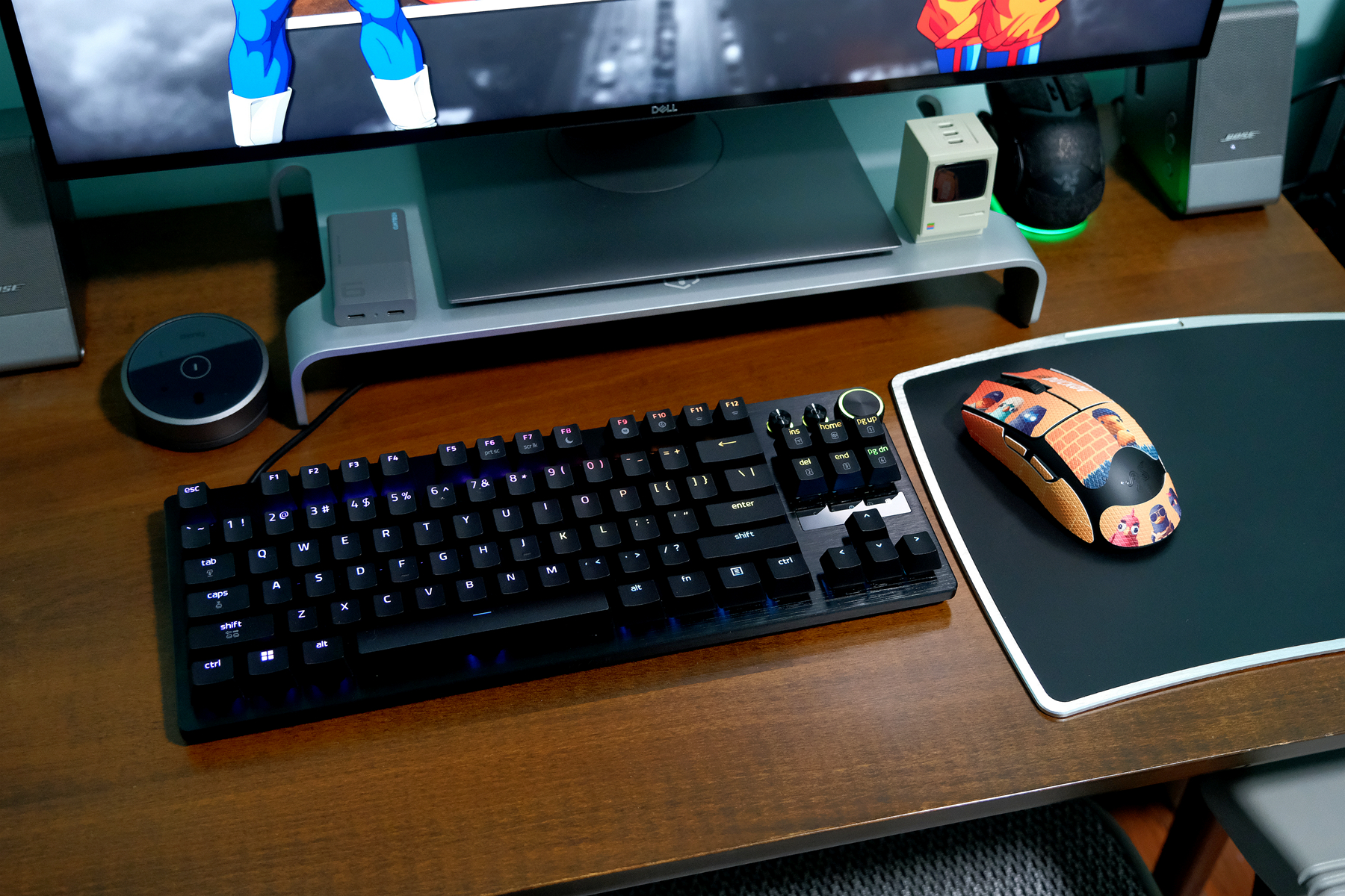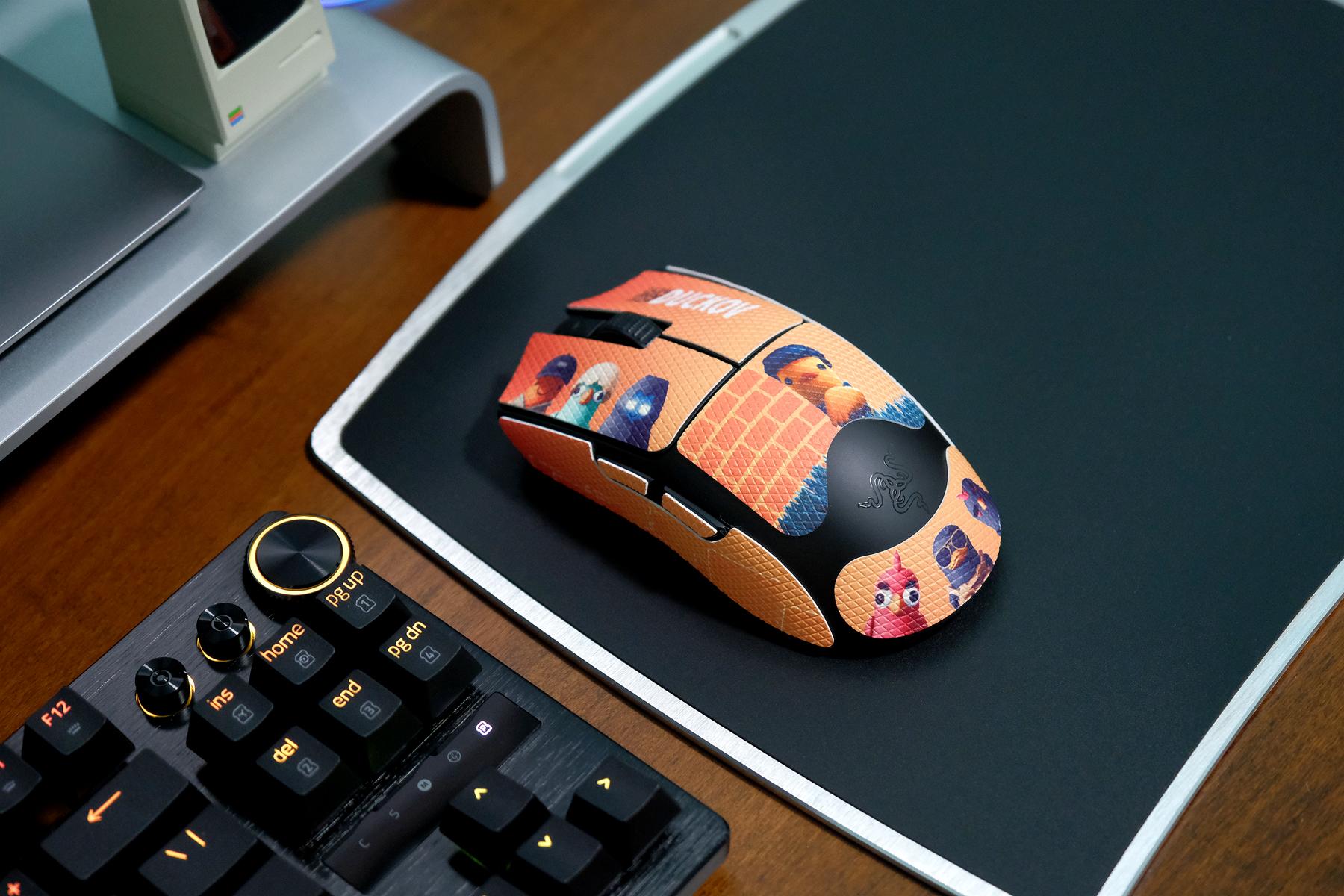 SE版性能方面搭载第二代FocusPRO 35K传感器,支持高达35000DPI,750IDS加速跟70G加速度也和专业版保持一致,轮询率支持1000Hz,如果不追求极致性能,这个性能参数对于大多数玩家来说使用场景并没有什么局限性,售价相对来说也更实惠,左右主按键采用的是雷蛇的第三代光微动,按键反馈敏捷清脆耐用性也更为出色,鸭科夫萌趣多彩的配色也给楼主单调的桌面带来不一样的靓丽元素▼