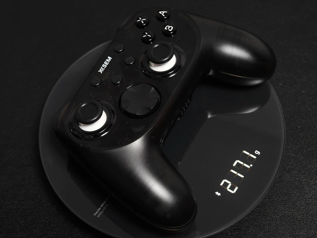 实测这款手柄仅重217g,搭配手柄表面的亲肤防滑涂层,握持感贴合、稳固又舒适,长时间游戏也不易疲劳;