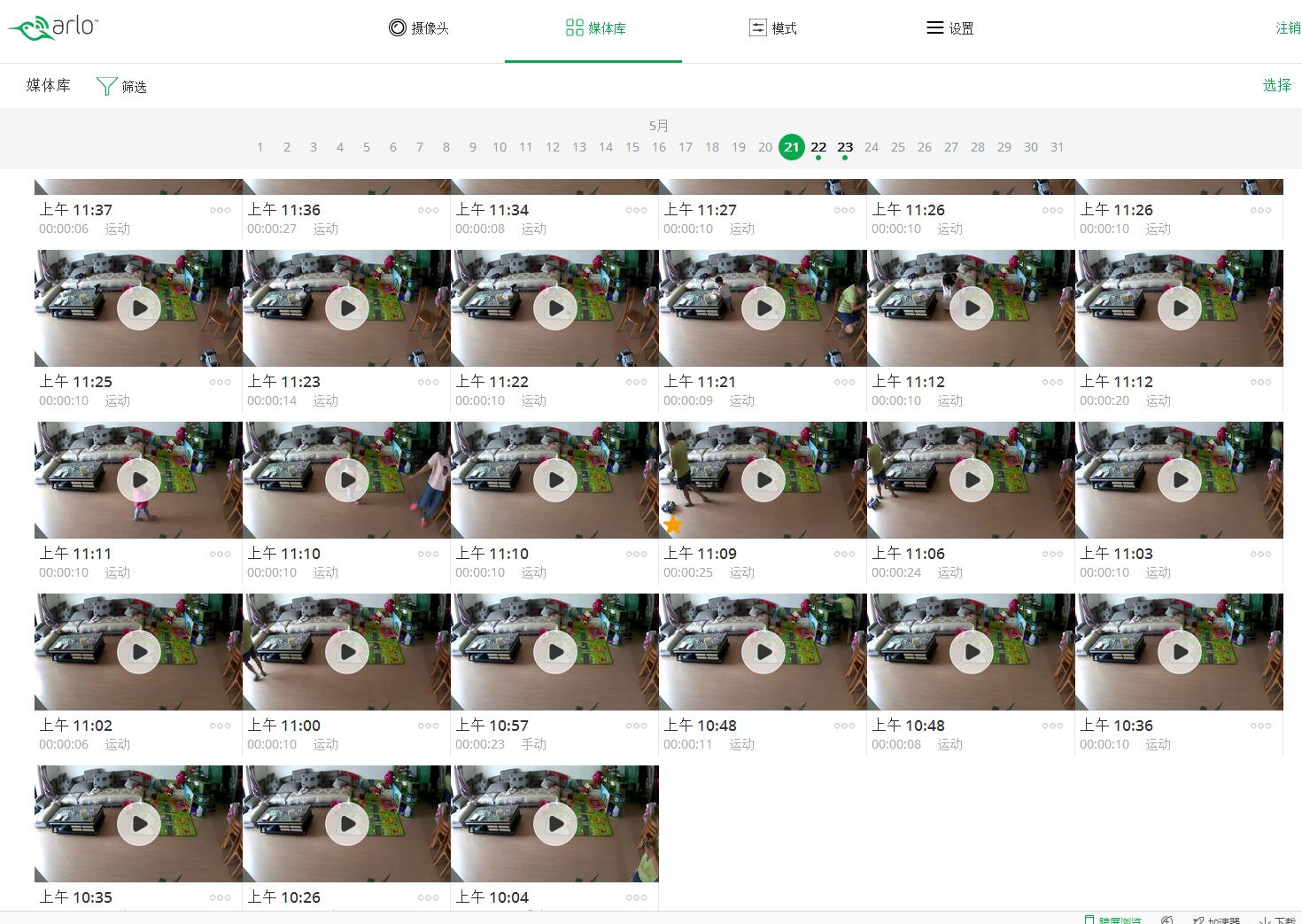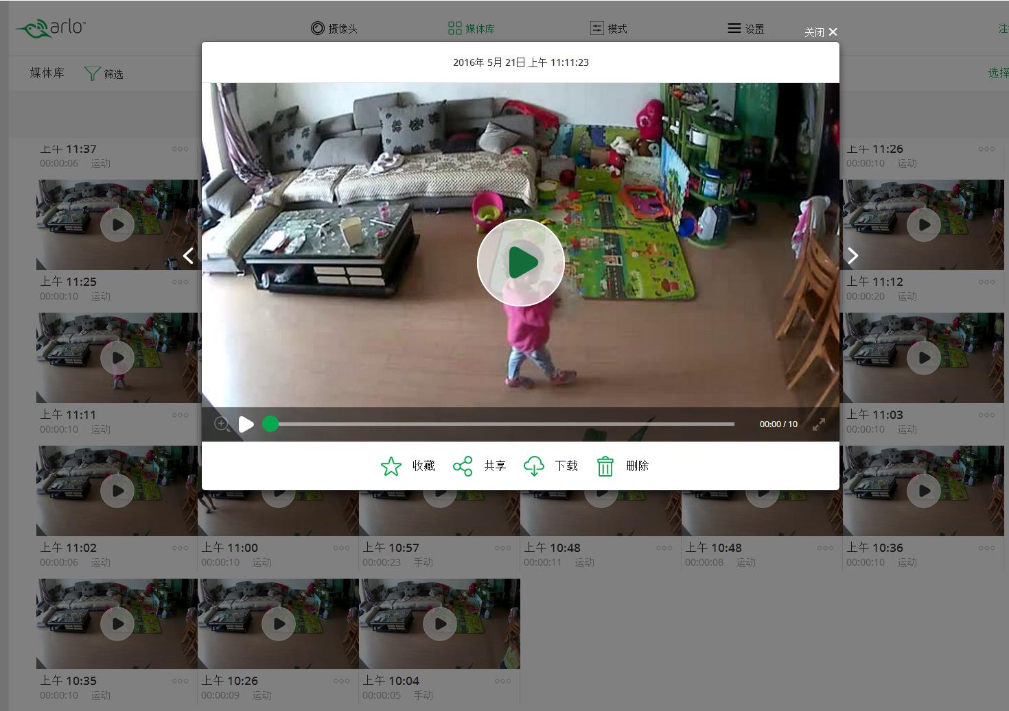 3、数据储存与传输 打开系统以后,录制好的视频,保存在ARLO智能家庭监控系统的云盘当中。这些视频都是依照时间排列,并注明了视频类别,功能非常实用。用户可以在远程通过APP或PC端随时可以回放。如果需要的话,还可以下载到本地进行保存。