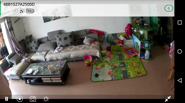 通过测试可以看到,在室内的各个角落,WIFI信号还是不错的,意味着ARLO的摄像头也可以在全家范围内正常使用。 5、继航时间 由于摄像头使用的是无线传输模式,由4节CR123A电池为其供电。在接近两周的日常使用中,平时每天使用摄像头10小时,电池损耗值为7%。要实现长达半年的续航,可能有些困难。 三、高级功能体验 1、画面监测功能 智能高清双摄像头家庭监控系统可以通过在客户端实时打开始监控功能,随时监控摄像头所拍摄的内容,虽然有着大约4S左右的延迟,但是画质还是比较理想的。